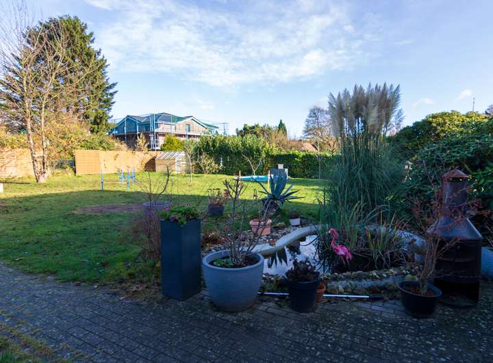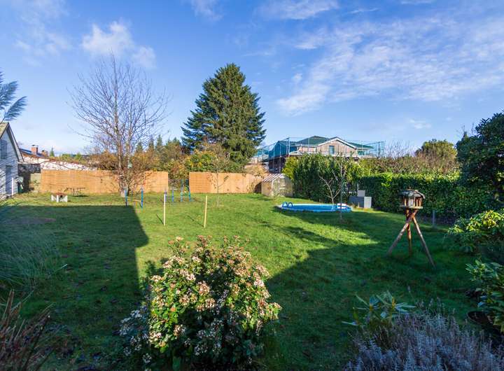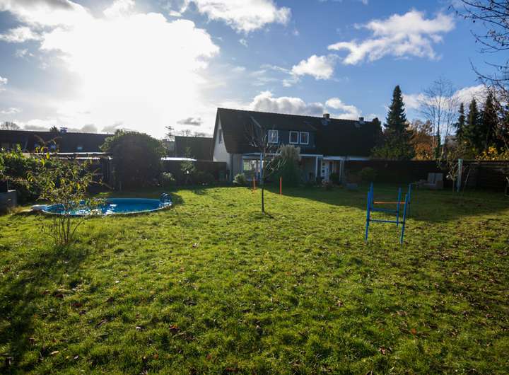 Das 1000,00 m² große Erbbaurechtsgrundstück bietet zahlreiche Gestaltungsmöglichkeiten, sei es für einen Spielbereich für Kinder, einen Garten mit Gemüsebeet oder einfach als Rückzugsort zum Entspannen. Der Garten ist pflegeleicht angelegt. Das Highlight ist der große Pool.