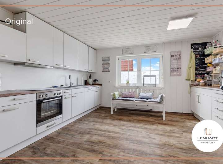 Im Wohnhaus stehen ihnen insgesamt 6 Zimmer zur Verfügung, von denen bis zu 3 als Schlafzimmer nutzbar sind. Ein helles Tageslichtbad mit Dusche und Wanne überzeugt mit seiner modernen Ausstattung. Die freundliche Küche ist mit einem anschließenden Esszimmer versehen und versprüht modernen Landhaus-Charakter.