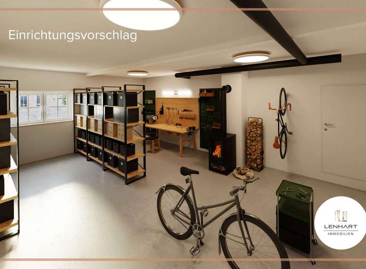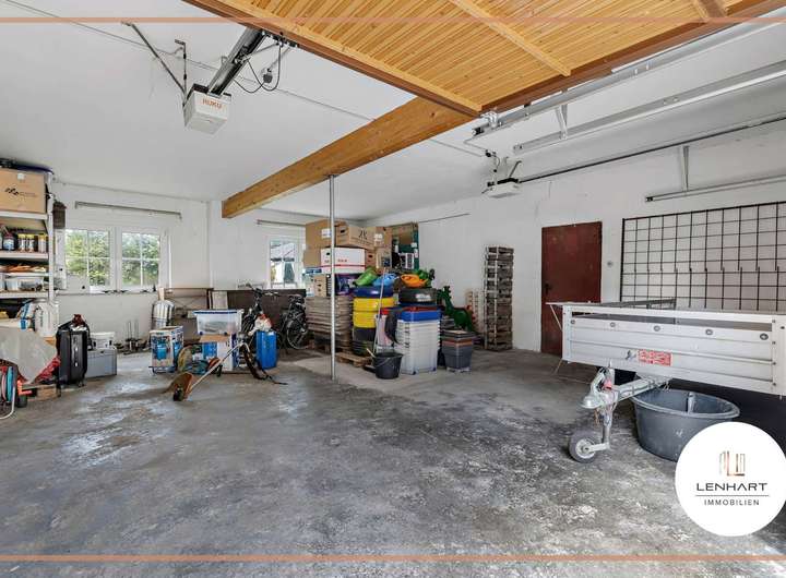 Die Werkstatt punktet mit einer eigenen Ofenheizung und vielen Lagermöglichkeiten. Ein Büroraum, der das Wohnhaus und die Werkstatt miteinander verbindet, besitzt ein eigenes Badezimmer mit Dusche. Außerdem stehen Ihnen mehrere Garagen zur Verfügung.