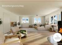 Das weitläufige Wohnzimmer mit Panorama-Kaminofen ist hell und bietet Raum für Ihre kreativen Einrichtungsideen. Anhand der Visualisierung wird sichtbar, wie mit minimalem Aufwand eine moderne und harmonische Raumatmosphäre geschaffen werden kann. Das Schlafzimmer überzeugt mit angenehmer Größe, während die beiden zusätzlichen Zimmer flexibel nutzbar sind - richten Sie hier Kinder- oder Gästezimmer ein, aber auch ein Homeoffice oder Hobbyraum sind denkbar.