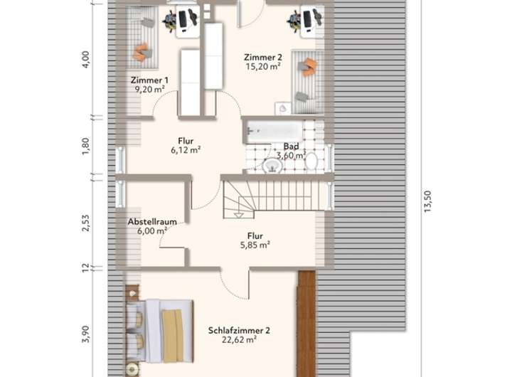 * Wohnfläche: Ca. 140 m² verteilt auf Erd- und Dachgeschoss.