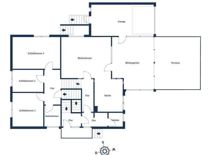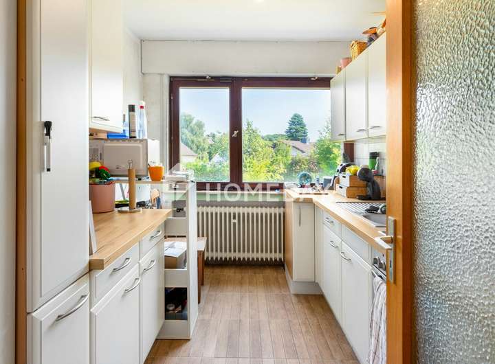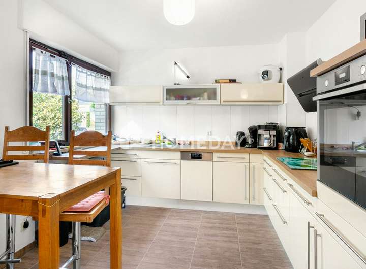 Der Lebensmittelpunkt befindet sich im Erdgeschoss, wo ein lichtdurchflutetes Wohnzimmer mit großen Fensterflächen einen direkten Zugang zur Terrasse, zum Wintergarten und zum ansprechend angelegten Steingarten eröffnet. Hier lässt sich das Wohnen mit viel Helligkeit und offener Atmosphäre genießen. Die Küche ist mit einer hochwertigen Einbauküche ausgestattet und verfügt über moderne Markengeräte, die das gemeinsame Kochen zu einem Vergnügen machen. Drei Badezimmer mit Dusche, Badewanne und Tageslicht sowie ein separates Gäste-WC unterstreichen den hohen Wohnkomfort.