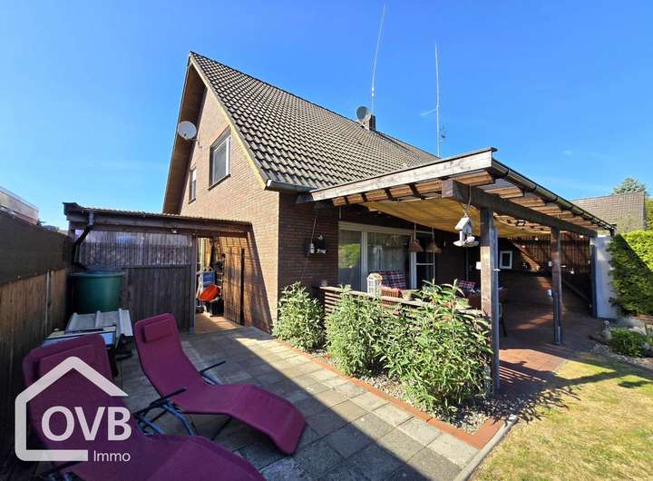 Die Haushälfte verfügt über einen eigenen Pkw-Stellplatz, eine massiv gebaute Garage und einen privaten Garten, der ideal für entspannte Stunden im Freien ist.