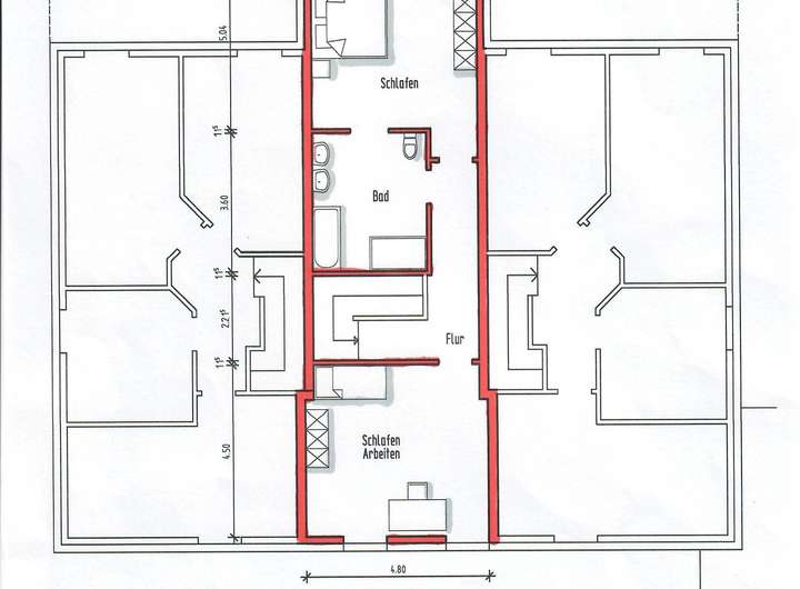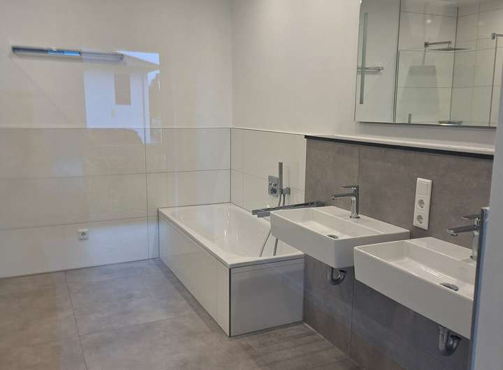 - Bad mit zwei Waschtischen, Badewanne, Duschbereich 150 cm x