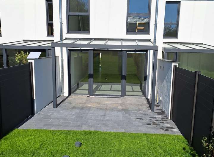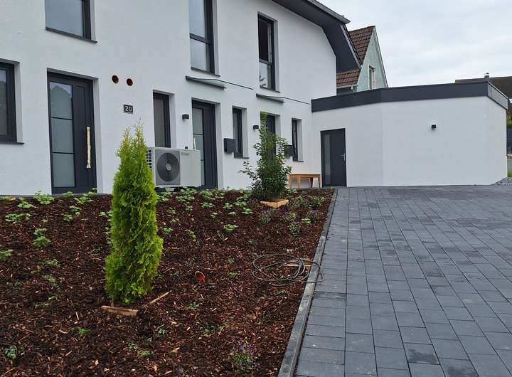 Das zweistöckige Reihenmittelhaus ist eine attraktive Neubauimmobilie, die durch eine gehobene Innenausstattung besticht und ab dem 01.01.2026 erstmalig bezogen werden kann. Neben drei hübschen Zimmern zählen zu der Immobilie ein Badezimmer, ein separates Gäste - WC sowie ein Hauswirtschaftsraum. Der Wohnbereich mit integrierter Küche ist nach Süden ausgerichtet und gibt durch eine großzügig Verglasung den Blick auf den privaten Garten frei. Vorgelagert befindet sich eine ca. 19 m² große Terrasse, die in einem Teilbereich mit Glas - 4,00 m x 2,00 m - überdacht ist. Des Weiteren wird auf der Südseite des Daches eine Photovoltaikanlage installiert. Der Zugang zum Objekt erfolgt barrierefrei. Auto - Stellplätze befinden sich direkt am Objekt und es existiert ein Abstellraum /außen für Fahrräder. Das Haus ist für Familien oder Paare geeignet, die Wert auf ein großzügiges Raumangebot und eine gute Erreichbarkeit legen.