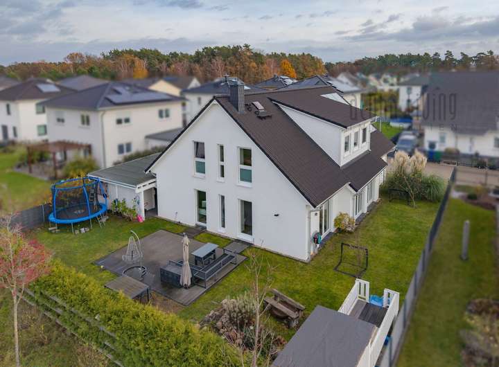 Ein Haus, zwei Lebenswelten – dieses moderne Zweifamilienhaus im gefragten Wohngebiet von Ludwigsfelde verbindet funktionale Architektur mit einem Gefühl von Ankommen und Zusammensein. Auf 207 m² Wohnfläche erwartet dich ein harmonisches Miteinander aus Rückzugsort und gemeinschaftlichem Leben. Im Erdgeschoss findest du helle, offene Räume mit viel Platz für Familienleben, während das Obergeschoss eine abgeschlossene Einliegerwohnung bereithält – ideal für Gäste, Großeltern oder Teenager. Die Umgebung überzeugt mit Nähe zu Parks, Schulen und einer hervorragenden Verkehrsanbindung. Ein Ort, der beides bietet: Geborgenheit im Inneren und vielfältige Möglichkeiten im Außen. Und genau das zeigen auch die vielen Vorteile dieses Hauses: