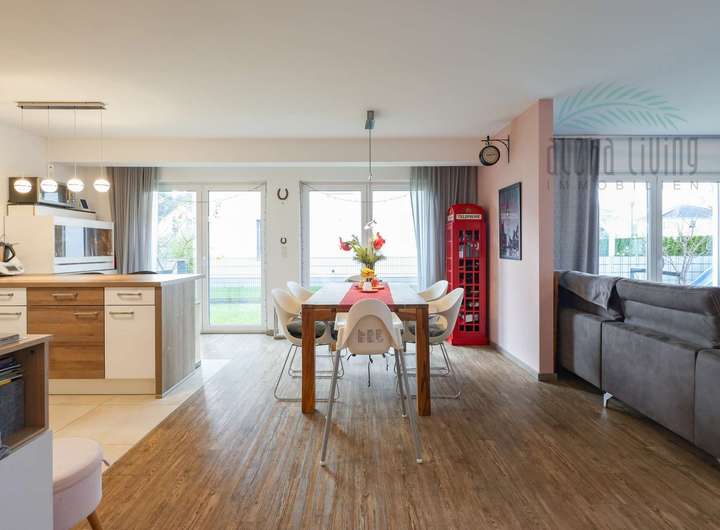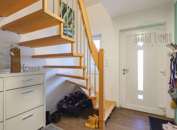 Das im Jahr 2017 errichtete Haus erstreckt sich über zwei Etagen und besticht durch seine klare Architektur und modernste Technik. Dank des jungen Baujahres und bester Pflege verbringst du hier sorgenlose Jahre, ohne in naher Zukunft weitere Investitionen in Sanierung oder Modernisierung zu tätigen. Gleichzeitig eignet sich dieses Haus optimal für Familien mit Mehrgenerationenkonzepten oder Platzbedarf für viel Homeoffice oder Hobby. Es verbindet modernes Wohnen mit einem durchdachten Grundriss, der Gemeinschaft genauso fördert wie Rückzugsmöglichkeiten bietet.