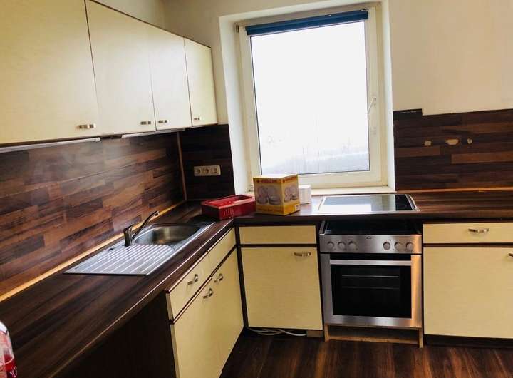 Garten, Duschbad, Einbauküche, Laminat, Fliesen