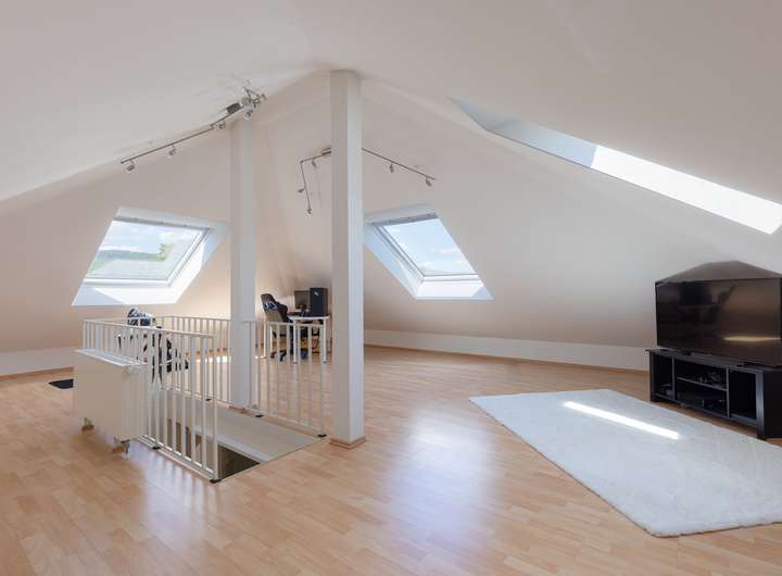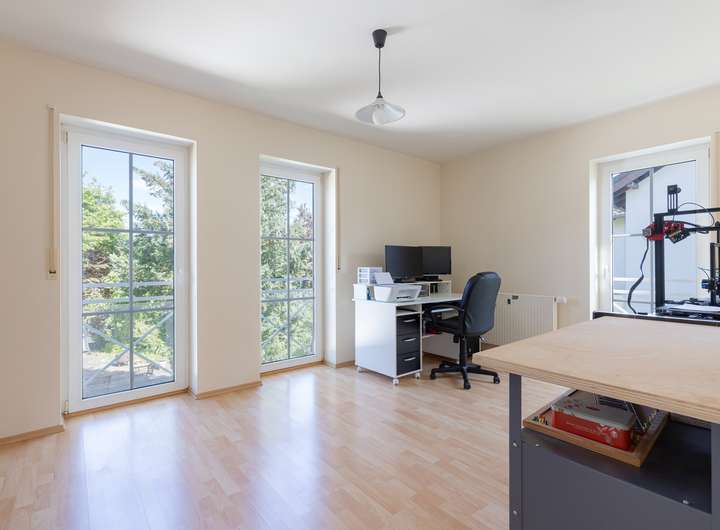 Das ausgebaute Dachstudio ist mit einer Tür abgegrenzt - ein ideales Homeoffice oder Hobbyraum. Von hier aus hat man einen wunderschönen Ausblick auf Königstein.