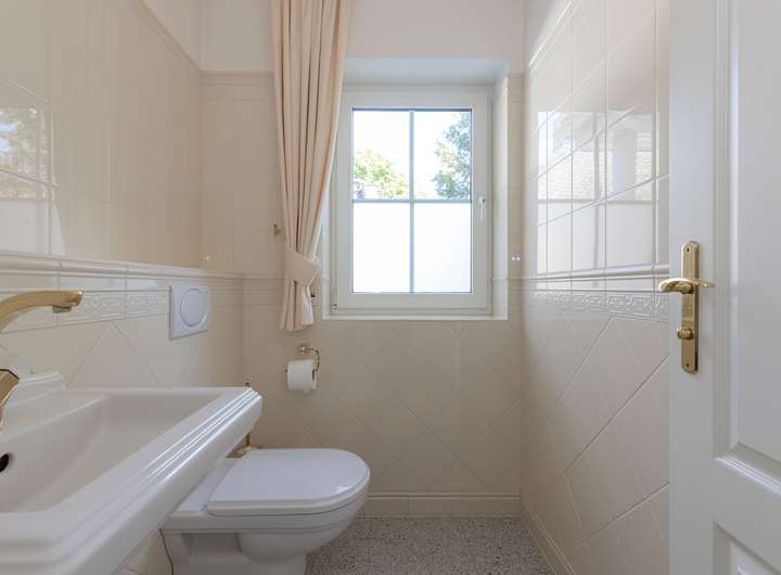 Im Gartengeschoss steht ein Gästebereich mit Duschbad zur Verfügung. Diese ca. 23 m² sind sehr gut wohnlich nutzbar, aber bisher nicht in der Wohnfläche enthalten. Zusätzlich stehen diverse Kellerräume zur Verfügung, die viel Stauraum bieten sowie ausreichend Platz für Waschmaschine und Trockner.