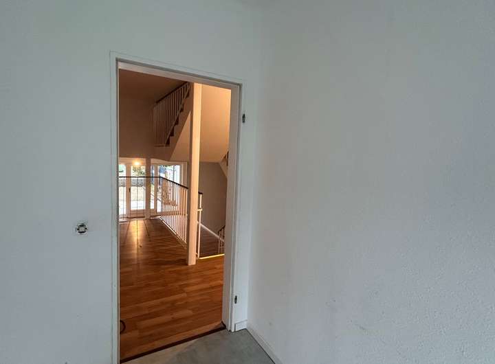 Vom Wohnbereich gelangt man zur Terrasse und dem Gartenbereich. Über die interessante Treppenhausverbindung gelangt man in den Bereich des I. OG. Hier befindet sich ein großzügiger, hoher Raum mit Anschluss an den ersten Balkon des Objekts. Halb hoch ist das moderne, ansprechend geflieste Bad mit Badewanne und Dusche. Ein weiteres, großzügiges Zimmer mit dem tollen Ausblick schließt sich an.