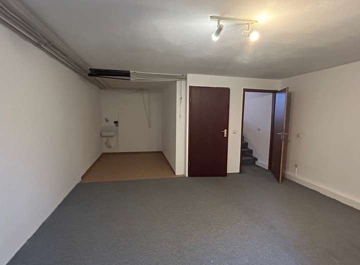 Das Objekt hat einen großflächigen Kellerbereich, der zunächst mit einem sehr großen (ca. 24 m²) geheizten Hobbyraum beginnt. Von dort aus gelangt man in den eigentlichen Kellerbereich. Hier gibt es viel Stellfläche, einen Wasch- und Trockenraum sowie den Technikraum.