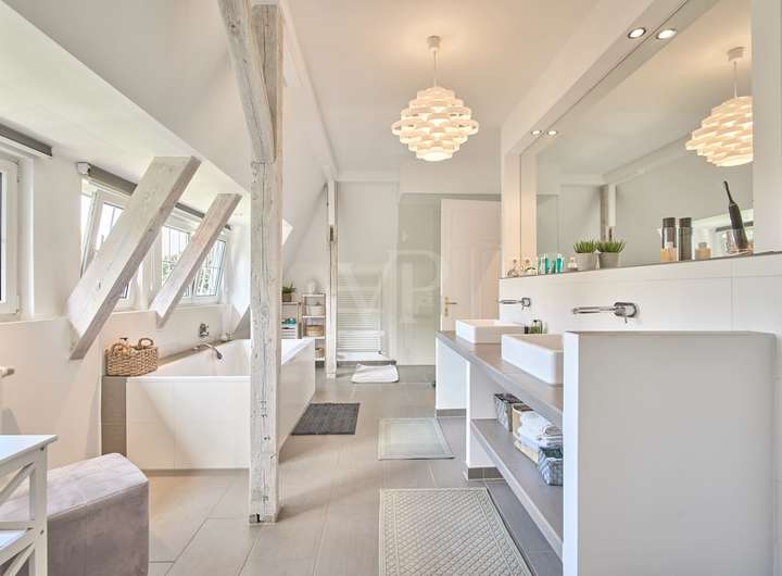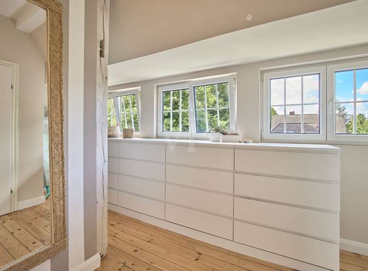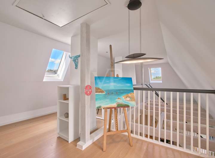 Die Galerie im Dachbereich ist ein weiteres Highlight des Hauses und bietet einen wunderschönen Ateliercharakter. Ob als Ruheoase, Büro oder Spielzimmer – hier werden Sie sich wohlfühlen!