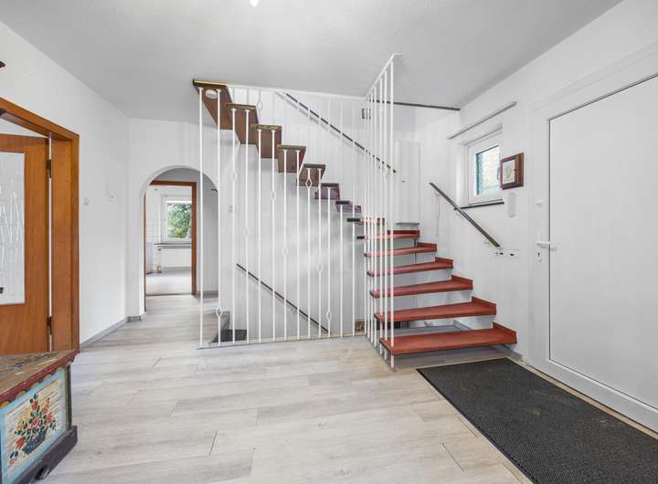 Aus unserer Sicht lässt sich mit geringem Aufwand das Haus möglicherweise auch aufteilen in ein Wohnbereich im Erdgeschoss und einer Einliegerwohnung im Obergeschoss für eine weitere Familien-Generation oder auch Vermietung.