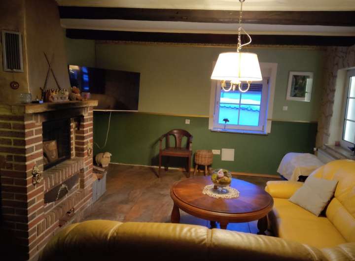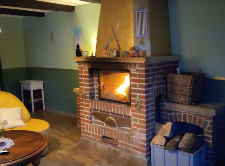 Großer Kamin für gemütliche Kaminabende und gleichzeitiger Beheizung im Obergeschoß.