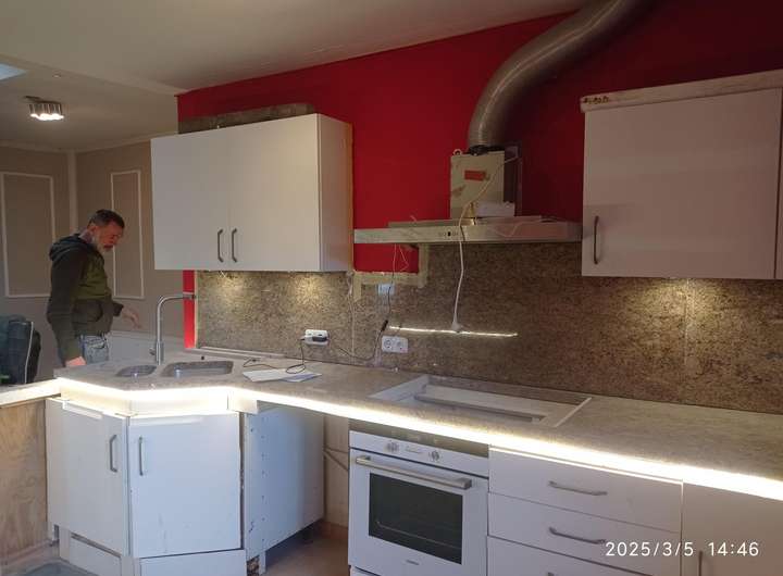 - hochwertige Einbauküche mit Granit- Arbeits- und Wandplatten und Bodenfliesen