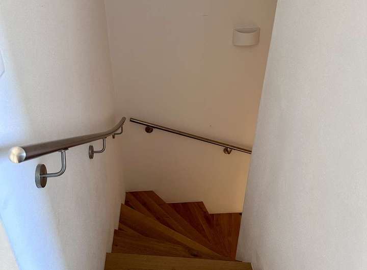 - Eichen-Parkett in allen Wohn-und - Schlafräumen passend dazu Eichen-Trittstufen als Treppenbelag