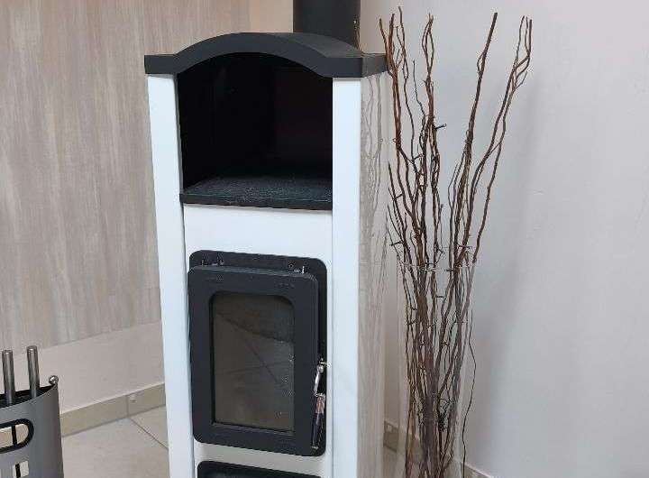 Wohlige Wärme bietet der im Wohnzimmer installierte Kaminofen (Schwedenofen), der aber auch optisch ein Blickfang ist.