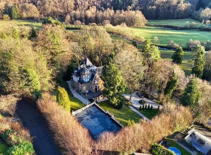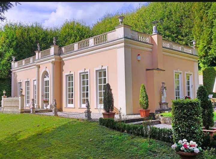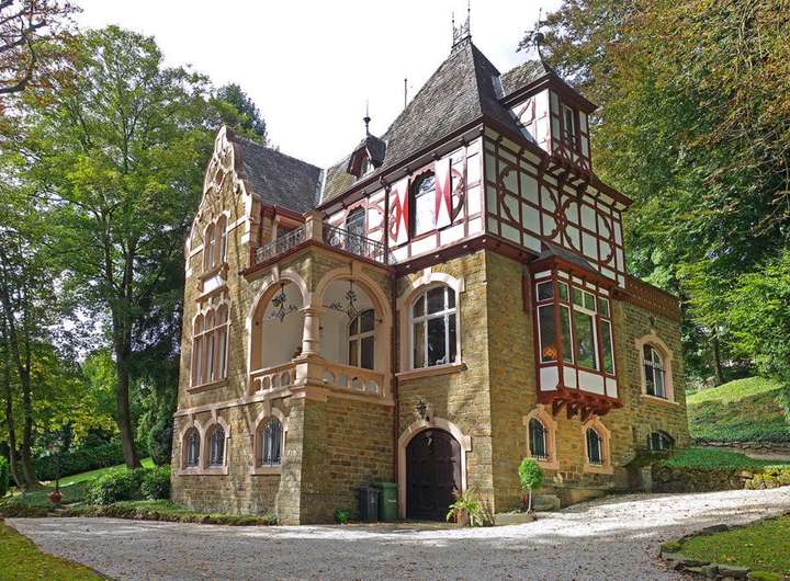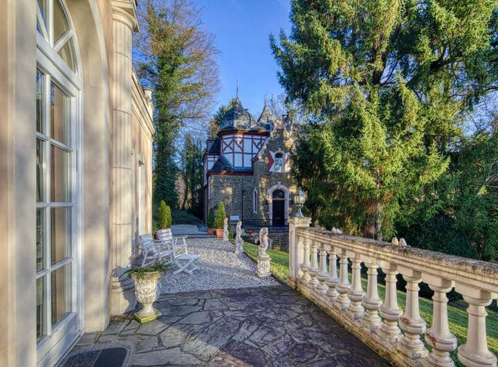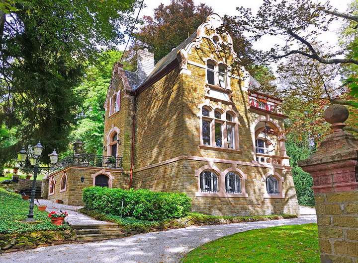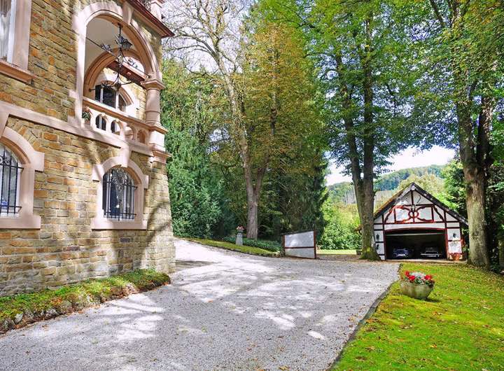 Ehemalige Fabrikantenvilla Baujahr 1892 innen und außen weitgehend originalerhalten mit Stuckdecken, Parkettböden, Holzintarsien und Glasmalereien. 9 Zimmer, 3 Bäder, Gäste-WC, ca. 339 m² Wohnfläche. 2004 wurde auf dem Areal zusätzlich ein edles eingeschossiges Gästehaus -als stilvolle Orangerie- errichtet mit ca. 150 m² Wohnfläche, 3 Zimmern und 2 Bäder auf einer Ebene. 6.500 m² Parkgrundstück, Garagenhaus für 4 PKW + Garage im Sockelgeschoss + 5 Stellplätze , sehr gepflegter Zustand. Kaufpreis EUR 1.900.000 FORDERN SIE EIN AUSFÜHRLICHES EXPOSÉ MIT ALLEN DETAILS, PLÄNEN, BILDERN UND VOLLSTÄNDIGER ADRESSE AN!