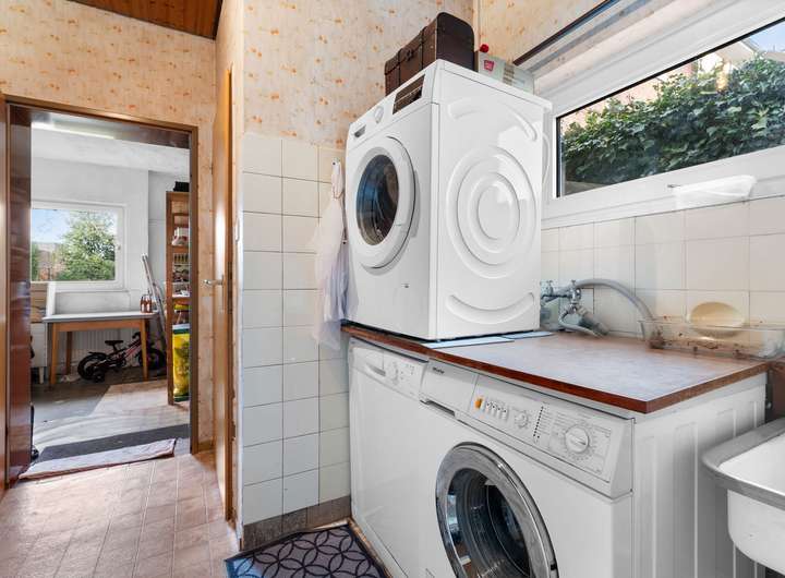 Das Haus verfügt über einen Flachdachanbau aus dem Jahr 1977 mit integrierter Garage – eine praktische Ergänzung zur historischen Bausubstanz. Ein Teilkeller sowie ein Dachboden bieten zusätzliche Abstellflächen und Stauraum.