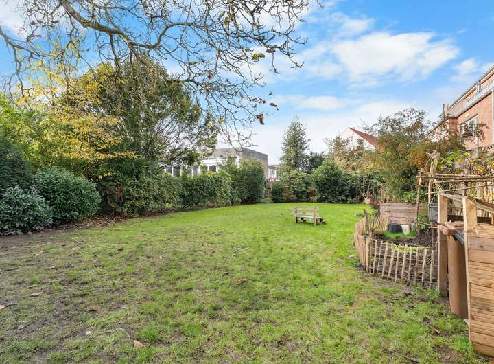 Das Grundstück ist mit überwiegender Rasenfläche pflegeleicht angelegt und kann mit einem stattlichen Walnussbaum aufwarten, der dem Garten eine besondere Atmosphäre verleiht – ein ruhiger Rückzugsort mitten in der Stadt.