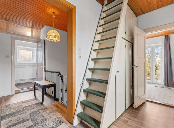 Der charakteristische Putzbau bietet Dir rund 162 m² Wohnfläche, verteilt auf sechs Zimmer und Nebenräume. Reichlich Platz für Paare, Familien oder alle, die Wohnen und Arbeiten unter einem Dach verbinden möchten. Der Grundriss, die Ausstattung und die Materialien der Räume und Einbauten spiegeln den Charme vergangener Jahrzehnte wider und machen zugleich deutlich: Hier hast Du die Möglichkeit, das Haus ganz nach Deinen eigenen Vorstellungen zu modernisieren und neu zu gestalten.