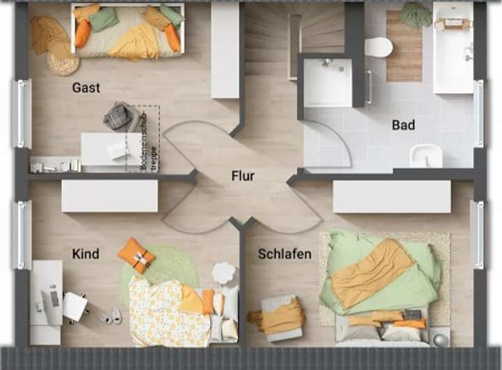lichtdurchflutete, freundliche Zimmer verleihen dem Haus eine attraktive Wohnatmosphäre auf zwei Ebenen.