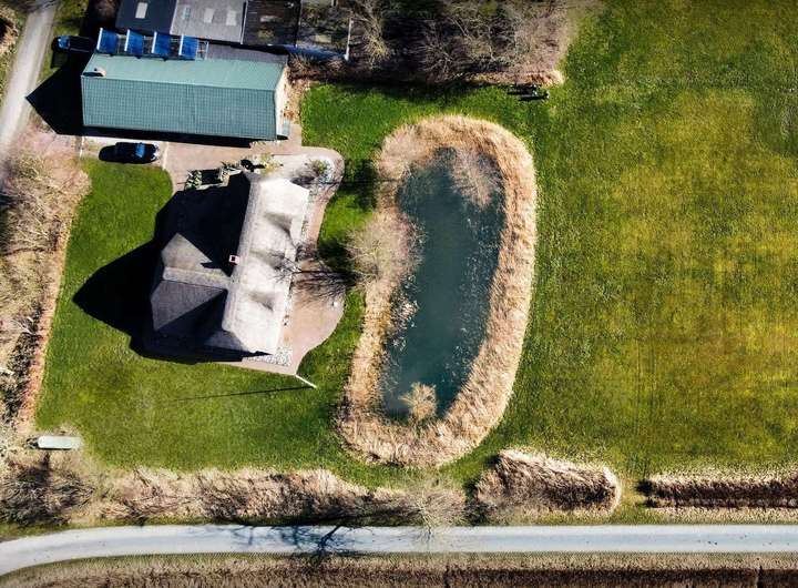 Grundstück: Außenanlagen: befestigte Hof-und Wegeflächen, Naturteich, Bauerngarten, Rasen.