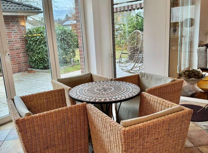 Bereits beim Betreten des Hauses empfängt Sie ein einladender und repräsentativer Eingangsbereich. Das Herzstück des Erdgeschosses bildet der sehr große, lichtdurchflutete Wohn- und Essbereich, der ein offenes und zugleich gemütliches Wohngefühl vermittelt. Der angrenzende Wintergarten erweitert den Wohnraum harmonisch und schafft einen wunderbaren Übergang in den Garten – ideal für entspannte Stunden zu jeder Jahreszeit.