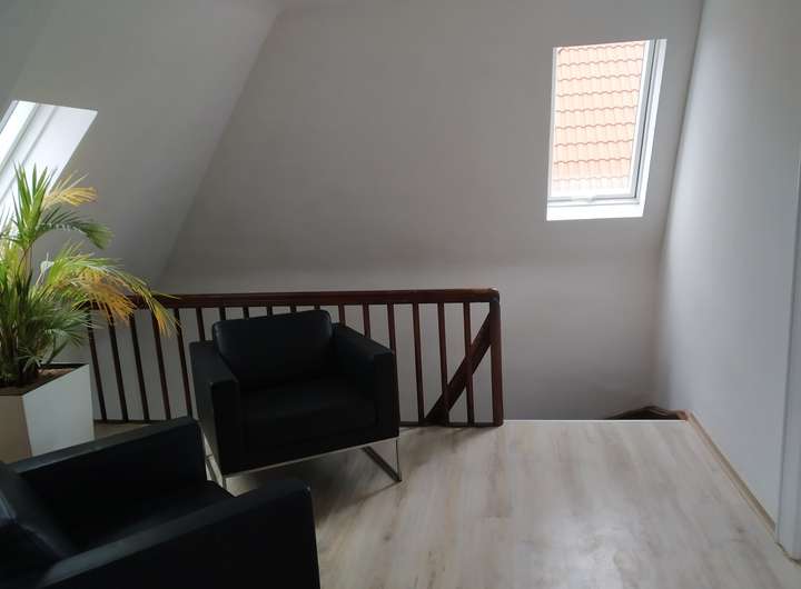 im 2. OG befinden sich ein großer heller Vorraum, 3 weitere Zimmer (als Wohn-, Schlaf-, Arbeitsräume nutzbar) mit hochwertigem Laminatboden sowie ein Fensterbad mit Dusche.