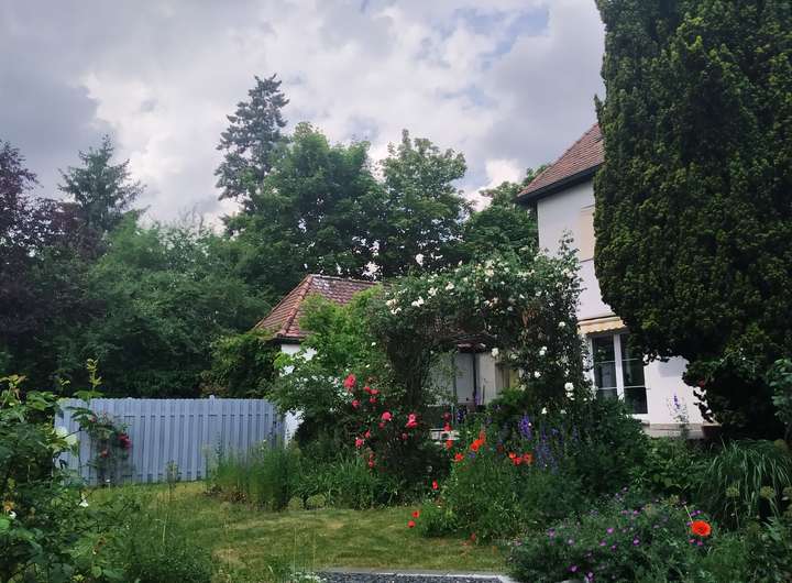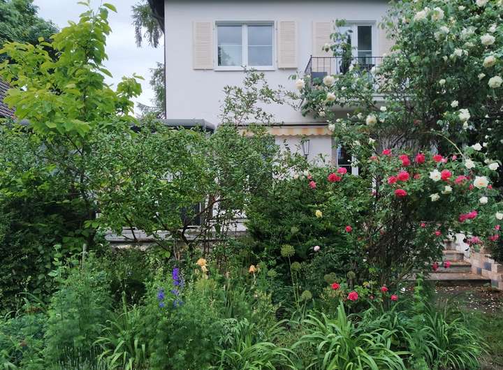 Entspannen Sie sich auf einem der beiden Balkone oder der teilweise überdachten Terrasse, genießen Sie den Blick auf den Garten oder ruhen Sie sich nach getaner Arbeit im Garten (z.B. auf dem Freisitz) aus.