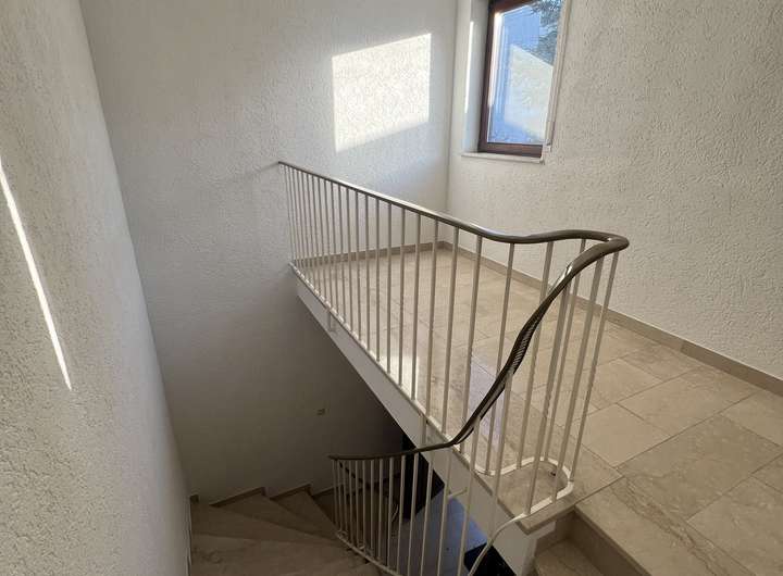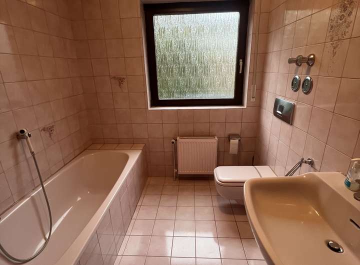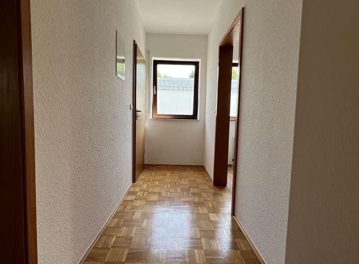 Das Obergeschoss verfügt über 3 Zimmer, ein Bad, eine Küche und eine Diele. Über zwei Zimmer gelangt man auf den sonnigen Balkon. Das gesamte Obergeschoss ist frisch renoviert.