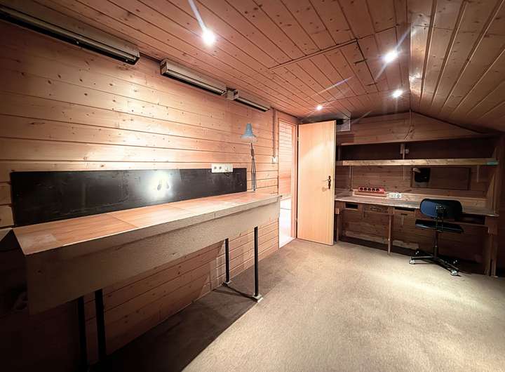 Ein besonderes Highlight ist der ausgebaute Dachboden, der als großer Lagerraum und abgetrennter Hobbyraum genutzt werden kann. Ideal für eine Werkstatt, kreative Projekte oder einfach zusätzlichen Stauraum.