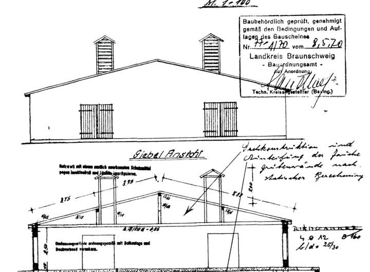 Das Gebäude wurde solide errichtet und ist mit einer soliden Dacheindeckung aus langlebigem Trapezblech ausgestattet. Damit ist die Bausubstanz gut geschützt und bietet eine solide Grundlage für vielfältige Ideen.