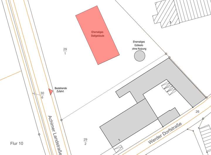 Das Gelände liegt am Ortsrand von Werder im Außenbereich der Samtgemeinde Thedinghausen, einem Ortsteil mit guter Anbindung und erreichbarer Infrastruktur. Die An- und Abfahrbarkeit zum Objekt ist unkompliziert, auch mit größeren Fahrzeugen oder Anhängern.