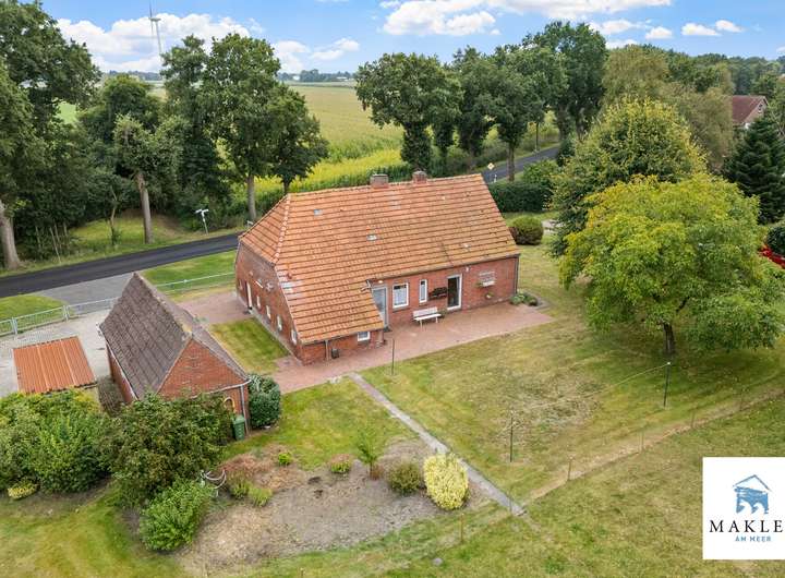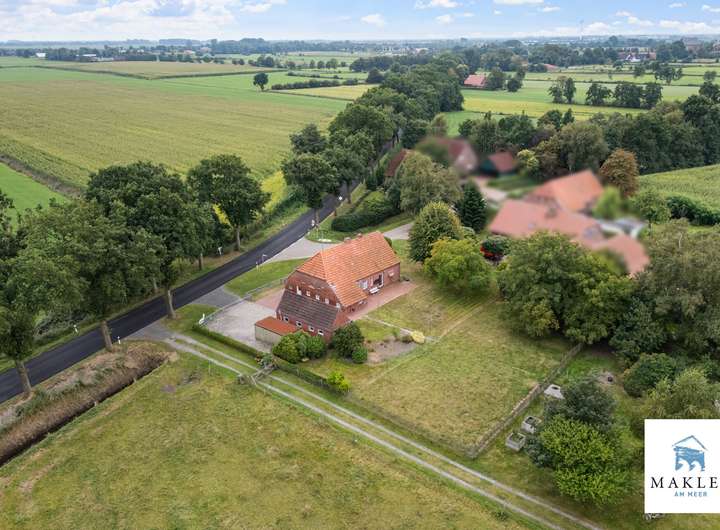 Das Anwesen befindet sich in der Gemeinde Südbrookmerland, Ortsteil Oldeborg, eingebettet in die weite ostfriesische Landschaft. Das Umfeld ist geprägt von Einfamilienhäusern, alten Hofstellen und viel Grün, was dem Standort einen typisch norddeutschen Charakter verleiht.