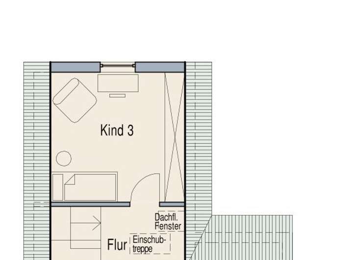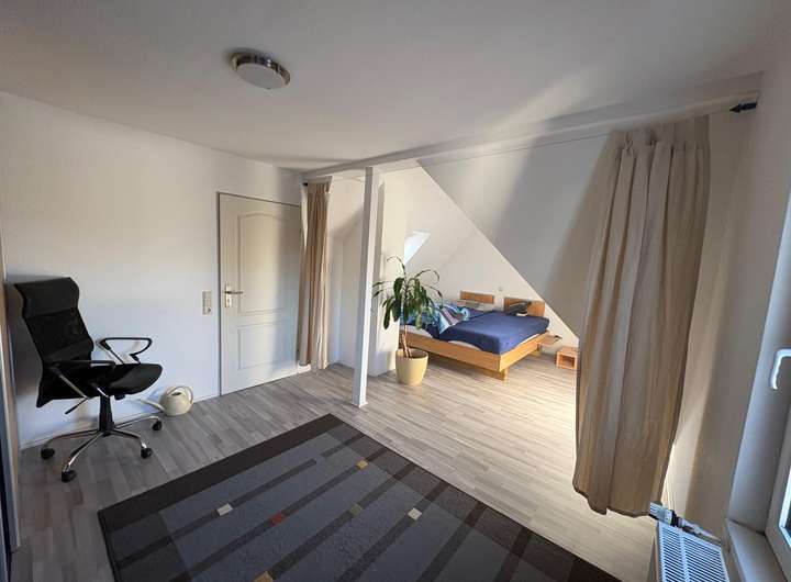 Wohnzimmer, Schlafzimmer, 3 Zimmer, Küche, Bad, Gäste-WC, Flur/Diele, Spitzboden (Abstellfläche), Kellerraum (Abstellfläche)
