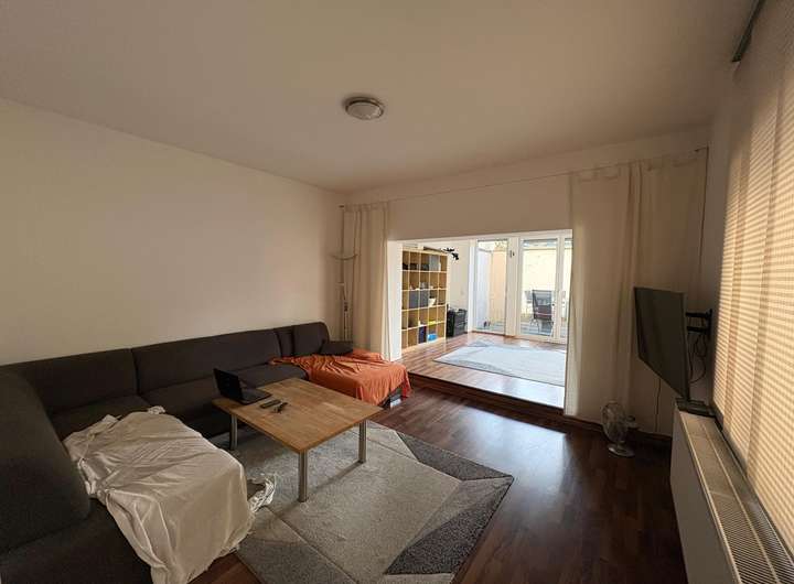 Laminat-Bodenbelag in Wohnzimmer und Schlafzimmer,
