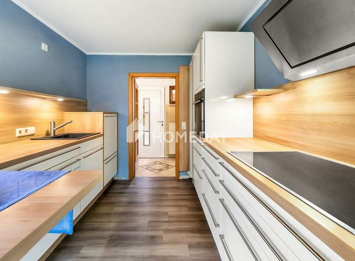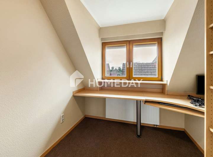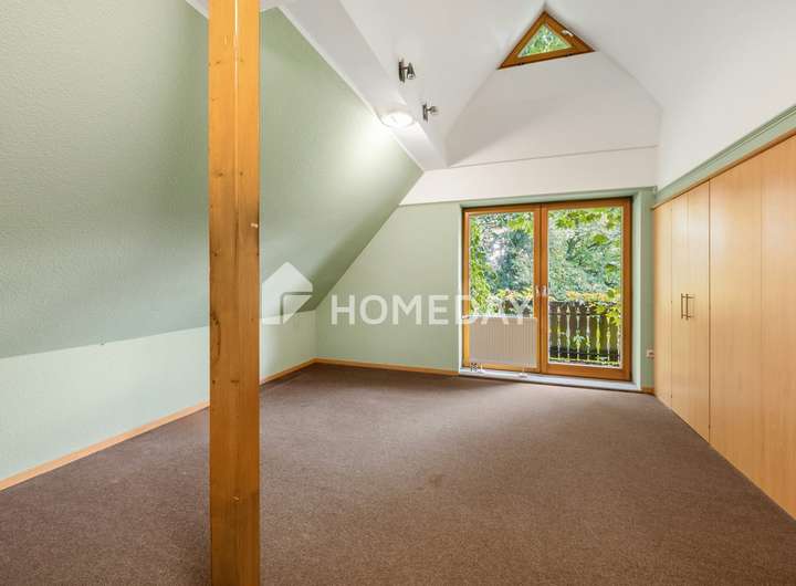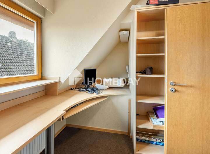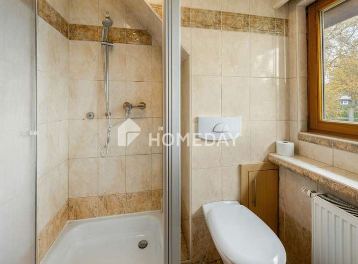 Durchdachte Details ziehen sich durch das gesamte Haus: praktische Einbauschränke, begehbare Kleiderschränke und sogar ein Wäscherohr vom Dachgeschoss in den Hauswirtschaftsraum machen den Alltag spürbar leichter. Das Badezimmer wurde teilweise modernisiert, die Heizungsanlage (Vaillant, Baujahr 2021) sorgt effizient und zuverlässig für Wärme. Vom Balkon des oberen Schlafzimmers genießen Sie den Blick ins Grüne und starten mit Ruhe und Licht in den Tag.