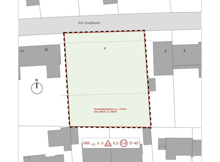 Das Grundstück befindet sich im Geltungsbereich eines Bebauungsplans und ist erschlossen. Aufgrund seiner Größe und Zuschnittsstruktur bietet es unterschiedliche Entwicklungsmöglichkeiten – von einer großzügigen Einzelbebauung bis hin zu einer Teilung in mehrere Baugrundstücke. Entsprechende Varianten sind beispielhaft dargestellt.