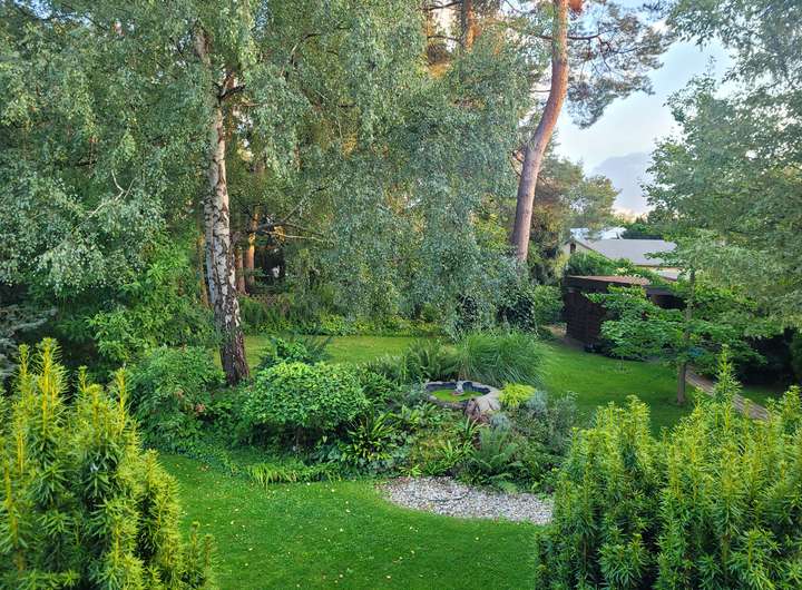 Zum Haus gehört ein großer, sehr gepflegter Garten, den Mieter*innen zur alleinigen Nutzung zur Verfügung steht. Im vorderen Grundstücksteil befinden sich eine Garage und ein Carport. Wenngleich für größere (Baumpflege)Arbeiten professionelle Unterstützung durch die Vermieterinnen beauftragt wird, bedeutet der Garten stete Pflege, daher wünschen wir uns Mieter*innen mit Sinn und Zeit dafür.