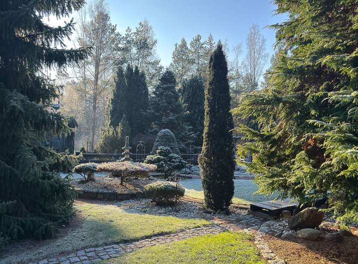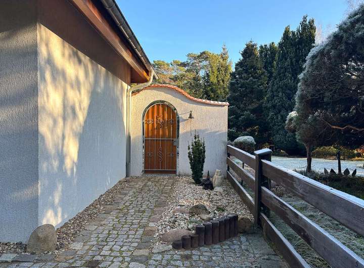 Sobald Sie den Garten betreten, öffnet sich eine eigene kleine Welt. Geschwungene Wege, einzelne Bäume und liebevoll angelegte Bereiche lassen diesen Außenraum zu einem Ort werden, an dem man die Verbindung zur Natur jeden Tag aufs Neue spürt. Hier wurde mit Hingabe geplant, gestaltet und gepflegt.