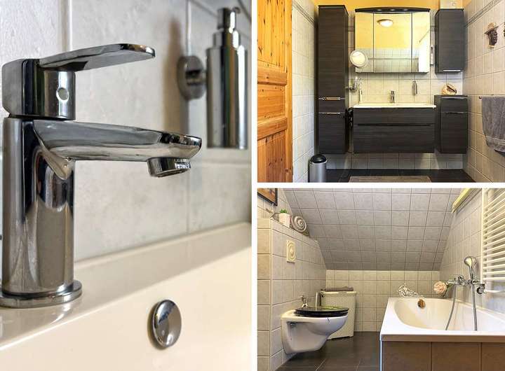 Abgerundet wird diese Ebene durch ein gepflegtes Wannenbad, das zum Entspannen und Zurückziehen einlädt.