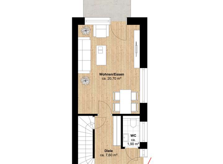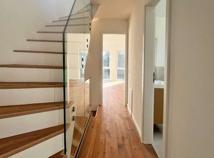 Große Fenster im ganzen Haus durchfluten die Räume mit natürlichem Licht und schaffen eine freundliche und offene Wohnatmosphäre. Die Immobilie ist mit einer modernen Einbauküche ausgestattet, die nicht nur funktional, sondern auch optisch überzeugt. Der großzügige Eingangsbereich verfügt über einen separaten Abstellraum und bietet ausreichend Platz für eine Garderobe. Von dem Wohnbereich im Erdgeschoss gelangen Sie auf die nach Süden ausgerichtete Terrasse mit einem kleinen angrenzendem Gartenbereich. Im ersten Obergeschoss befindet sich ein großzügiges Schlafzimmer, ein Arbeits-/Kinderzimmer sowie ein modernes Duschbad. Im zweiten Obergeschoss befindet sich ein weiteres Schlafzimmer sowie ein sehr großzügiges Duschbad. Ein separates Gäste-WC im unteren Geschoss sorgt für weiteren Komfort. Zwei Stellplätze direkt vor der Haustür runden dieses attraktive Angebot ab. Diese können für jeweils 70 € dazu gemietet werden.