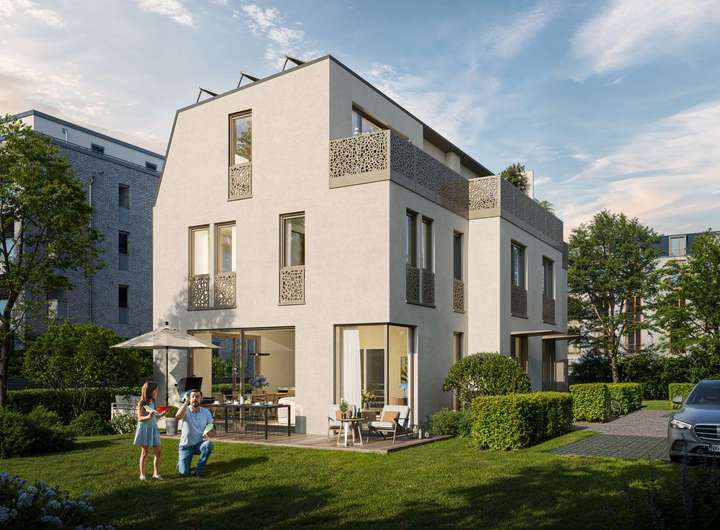 Leben im siebten Wohnhimmel wird in Ihrem neuen Zuhause Wirklichkeit: Mit fünf Zimmern, die sich auf drei Ebenen verteilen, zwei Bädern, einem Gäste-WC, zwei Terrassen, eigenem Garten und dem kompletten Untergeschoss als Hauswirtschaftsbereich wird Komfort neu definiert.