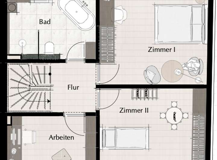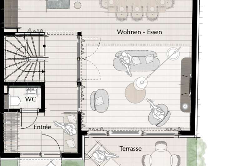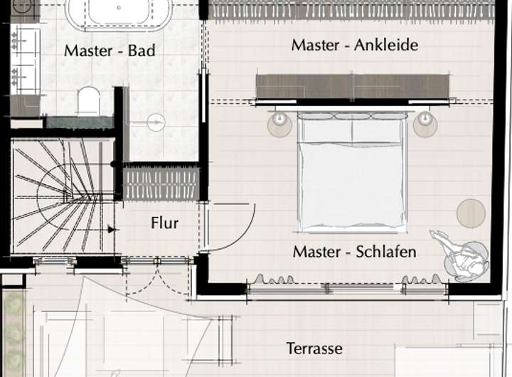 Aber fangen wir von vorne an: Entrée des Townhouses bildet eine charmante Garderobe mit gemütlicher Sitznische, die den Blick auf den großen Wohnbereich mit offener Küche, Essecke und Blick auf den kleinen, aber feinen Garten bzw. die Terrasse freigibt. Dann geht’s hoch hinaus: Zunächst ins 1.OG, hier warten zwei Schlaf-, ein Arbeitszimmer sowie ein geräumiges Tageslichtbad auf Ihre Liebsten. Das Schönste haben Sie allerdings noch nicht gesehen: Ihr persönliches Reich im 2. OG mit Masterbedroom, Ankleide, Bad ensuite und eigener Dachterrasse. Jetzt müssen Sie sich nur entscheiden: Welches Zimmer möchten Sie in Gedanken als erstes einrichten?
