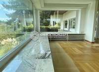 Die großzügige Wohnetage besticht durch ihren eleganten Stil der 1950er Jahre und viele original erhaltene Details: Hochwertiger Echtholzparkett, ein voll marmoriertes Badezimmer, separates Gäste-WC, maßgefertigte Einbauschränke, edle Holzvertäfelungen und eine weiße Einbauküche mit Marmorarbeitsplatte verleihen der Wohnung ihren besonderen Charakter. Der lichtdurchflutete Wohnbereich mit Kamin, XXL-Fensterfronten und Marmorfensterbänken öffnet sich zum Garten hin und bietet einen spektakulären Ausblick ins Grüne.