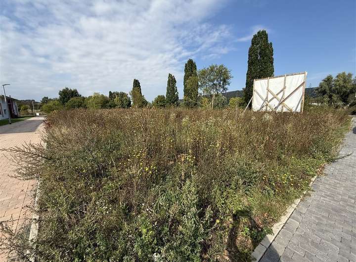 Hier wurden zwei Flurstücke (jeweils ca. 1.000m² groß) zu einem großen Grundstück verschmolzen, das wiederum Platz für vier Baugrundstücke bietet.