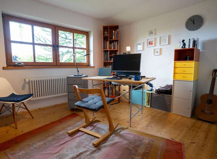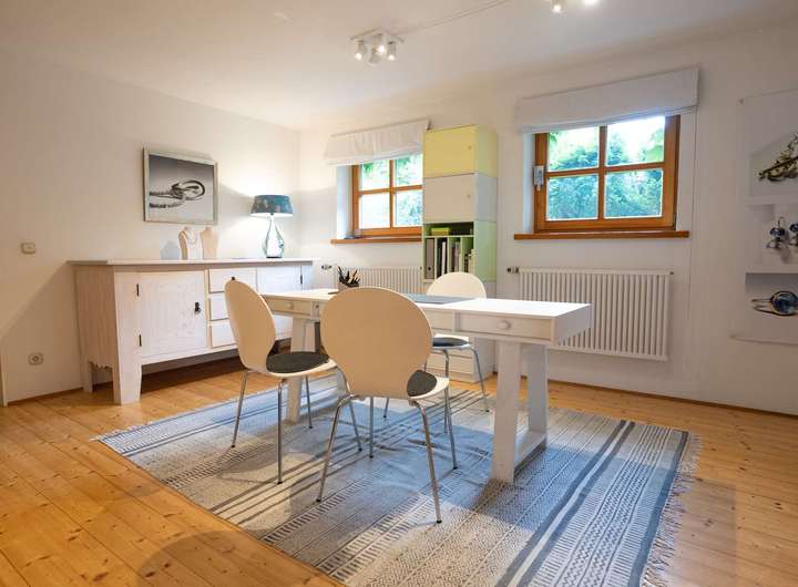 Dieser Bereich verfügt über einen eigenen Zugang, ein Badezimmer und eine kleine Einbauküche. Er eignet sich ideal als Einliegerwohnung, für Home-Office, als Praxisraum, Atelier oder als separater Rückzugsort mit folgenden Räumen:
