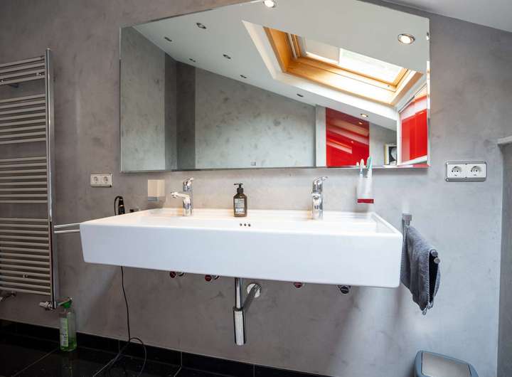 Insgesamt stehen drei Badezimmer zur Verfügung – eines davon in der Einliegerwohnung.